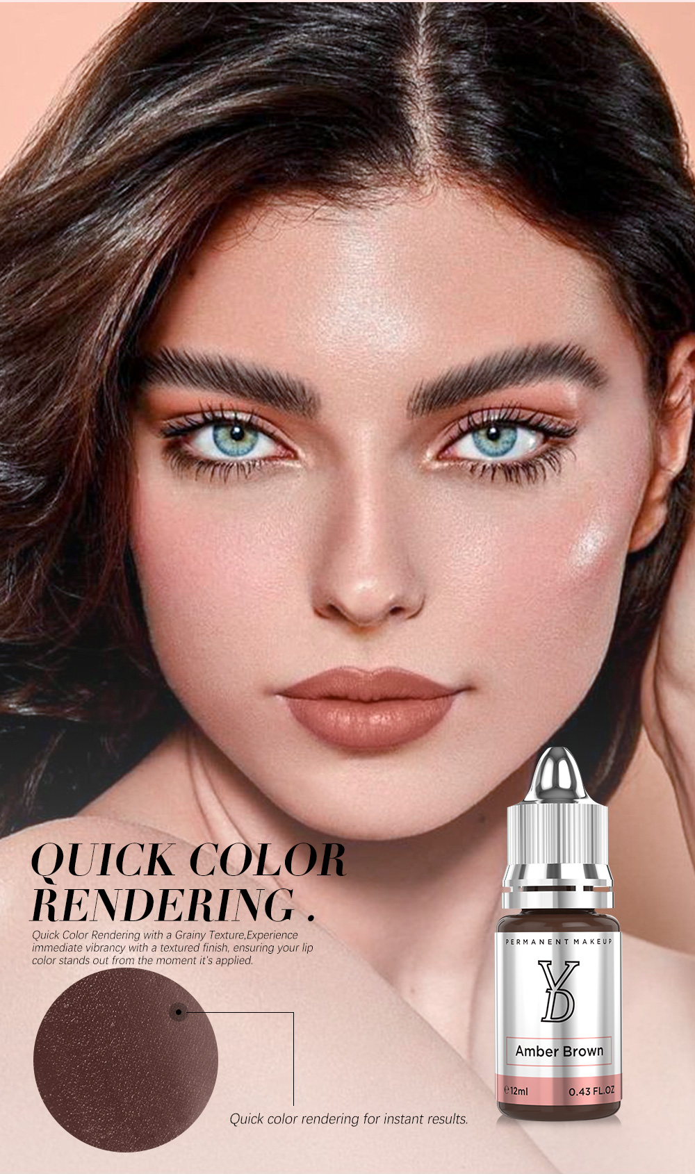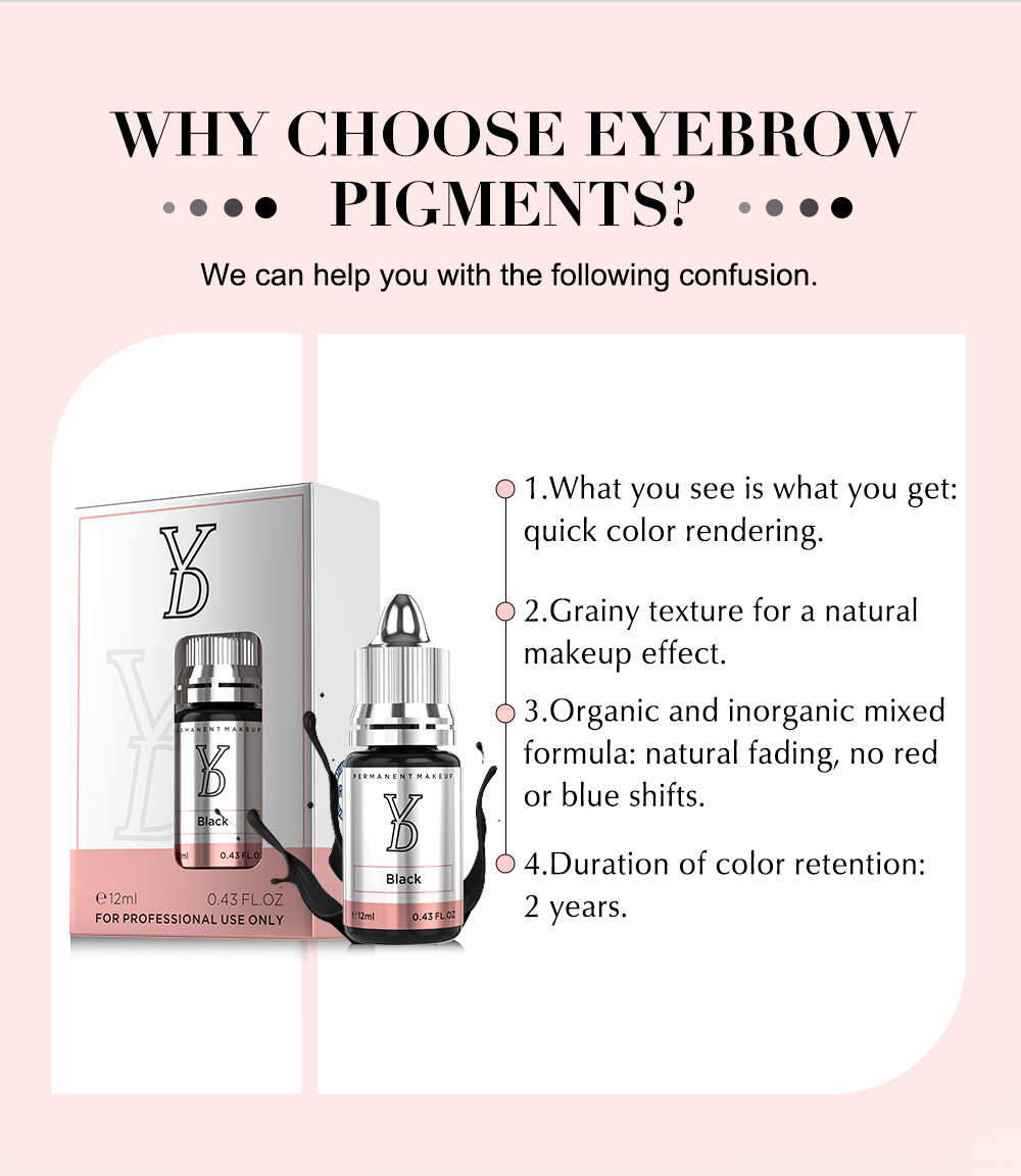 Eyebrows: Dotting, misting, and slow linear eyebrows. High saturation, medium molecule particles, capable of creating large particle misty eyebrows or thick linear eyebrows, such as American-style misty eyebrows or Thai-style linear eyebrows. Suitable for machine novices, heavy-handed embroiderers, and those transitioning from creamy to liquid pigments, as well as for technicians using large stroke tattoo machines for eyebrows.